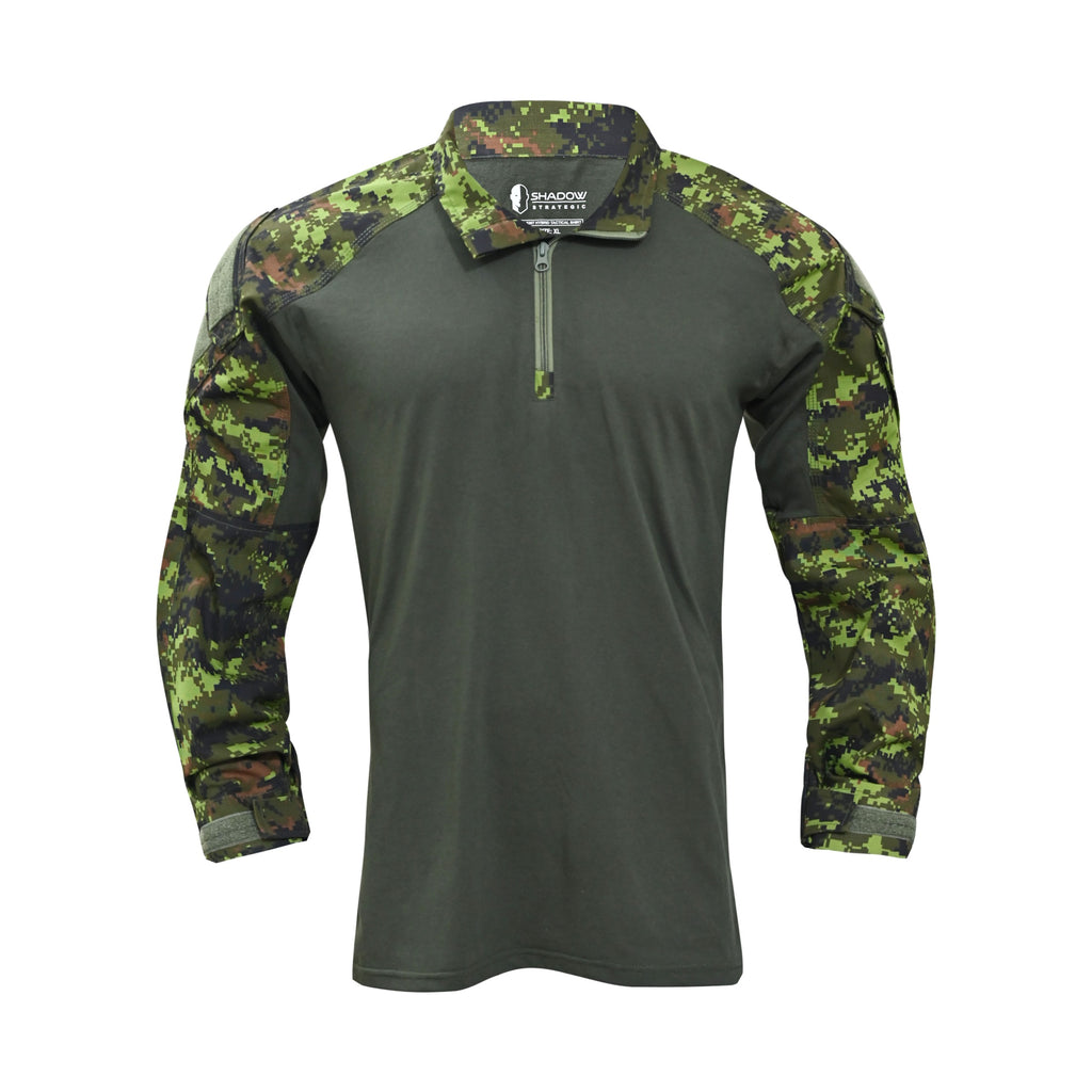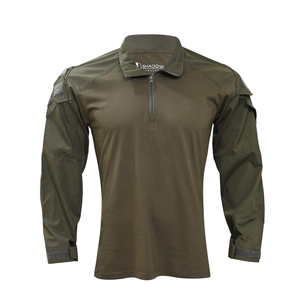 The Shadow Strategic Hybrid Tactical Shirt is designed for hot climates, made from two types of fabrics to provide comfort and extra ventilation when using the body armor vest. The central part of the under armor shirt is made of mid weight -wicking PC (80% cotton/20% polyester) torso fabric with features enhanced breathability and elasticity. It is highly wicking material. The sleeves and collar are made from 60% cotton and 40% polyester Rip-stop fabric to make the shirt more strength in the military field use.
